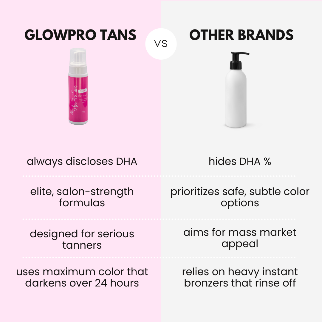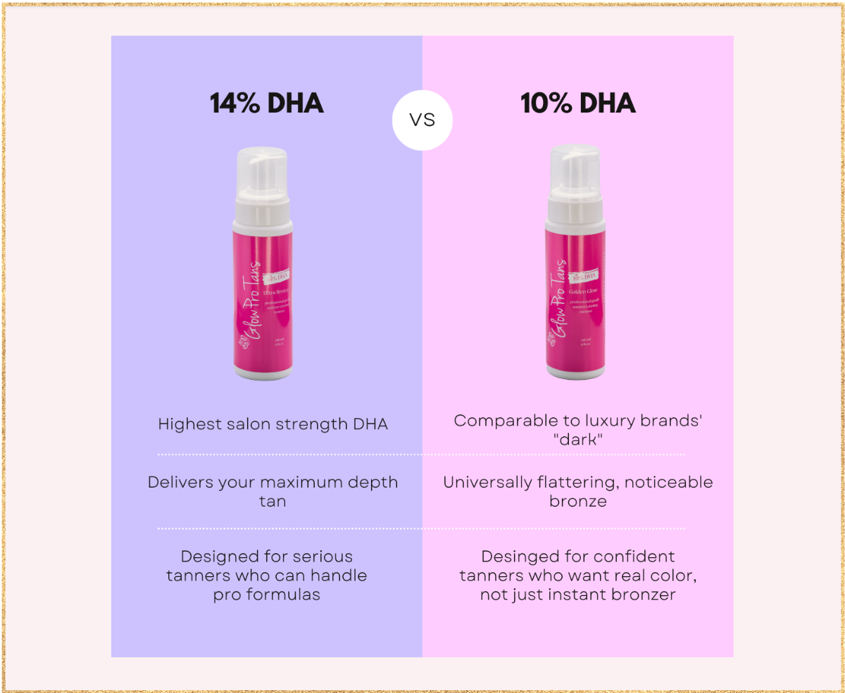 THE DHA % (active "browning" ingredient in sunless tanner) IS CRUCIAL BECAUSE IT DIRECTLY CORRLEATES TO HOW DARK YOUR TAN WILL BE.