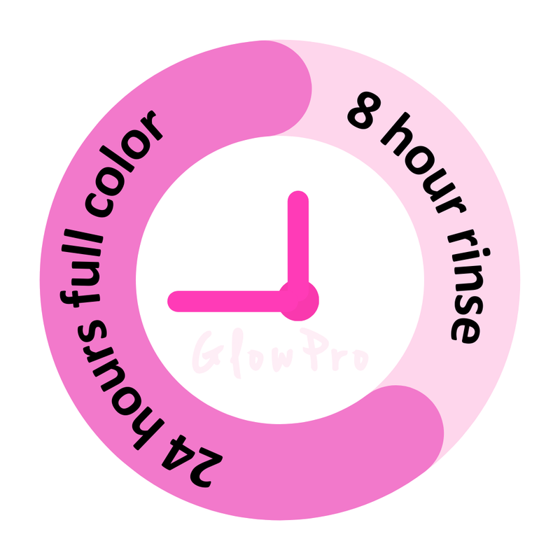 GlowPro’s full color will gradually develop over 8–24 hoursafter application. Higher DHA means more color potential, but the skin can only react with so many molecules at once. The color can continue to develop even after you shower!